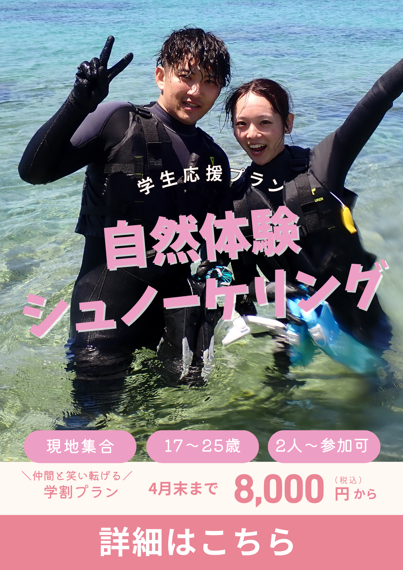 現地集合の場合は準備を含めて約2時間(海中60分)。