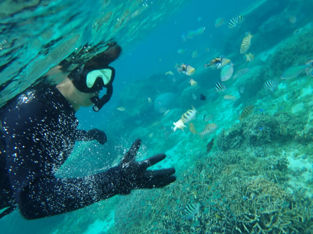 沖縄・那覇からもアクセスが良い糸満・ジョン万ビーチで提供しているのは、単なる観光としての海遊びではありません。100種類以上の生き物たちの中から「この子に会いたい!」という子を自分たちで探しに行く、対話型の自然体験シュノーケリングです。魚たちと目が合った瞬間の驚きや、見つけた時の達成感、そして探す前のワクワクした期待感。それは、この場所でしか味わえない唯一無二のストーリーです。