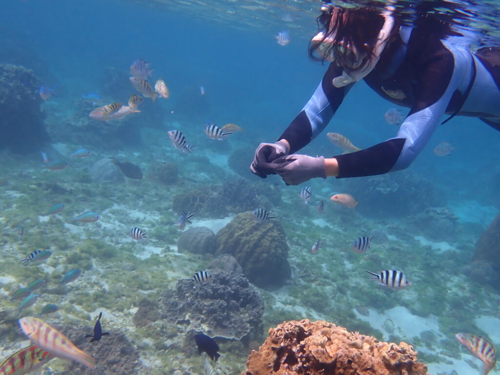 那覇空港近くで送迎も行っているため、今回のお客様のように日帰りや到着日の短時間でも、本格的な自然体験シュノーケリングを楽しめます。2歳から80歳まで、初心者の一人旅でも安心。清潔な器材を整えて、本物の感動を届け続けます。