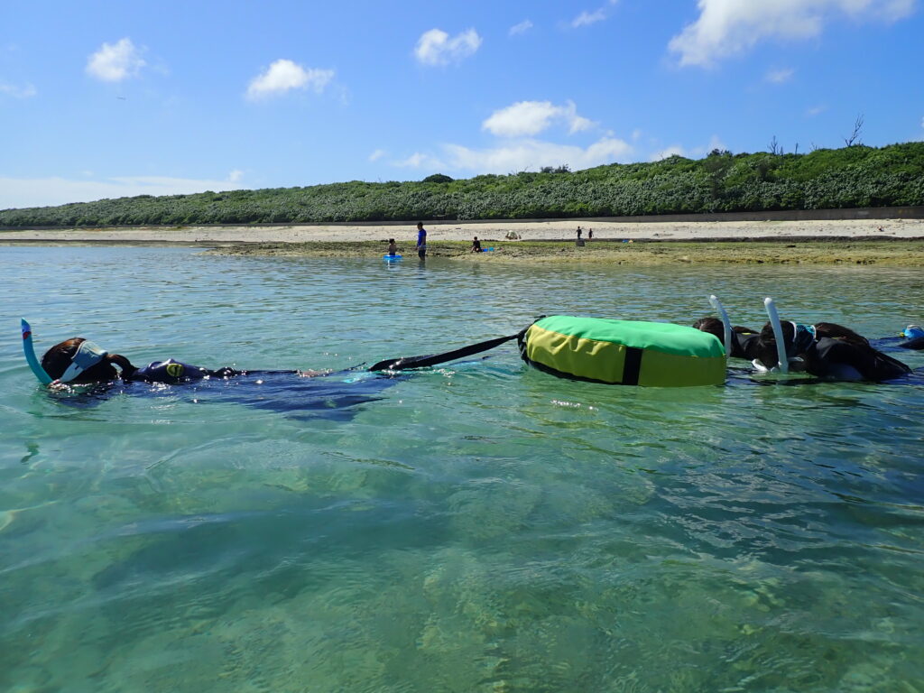 泳ぎが苦手で不安だったり、海に入るのが少し怖いと感じたりする初心者の方の気持ちに寄り添い、緊張を解きほぐしながらガイドいたします。那覇空港近くのジョン万ビーチは、ビーチから歩いて海に入るスタイルなので船酔いの心配もありません。