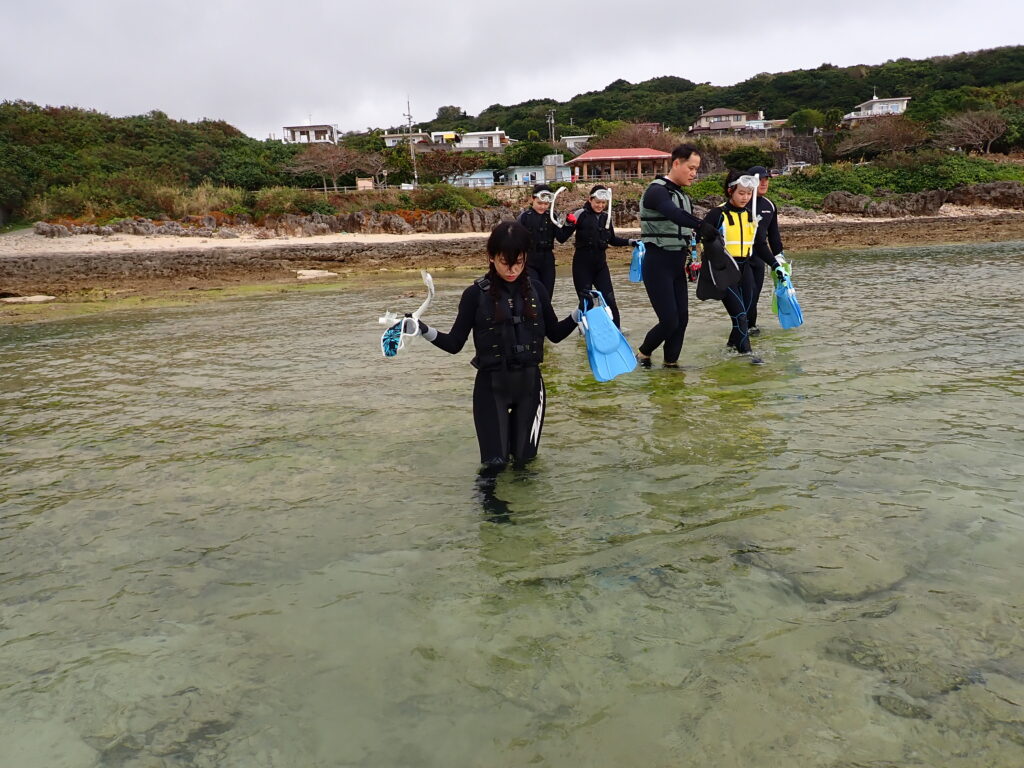 私たちの自然体験シュノーケリングは、初心者歓迎・2~80歳参加可。ビーチエントリーなので船酔いなしで、1人参加も大歓迎です。清潔な器材を完備し、那覇空港近くという好立地を活かして到着日・最終日でも参加OK!。