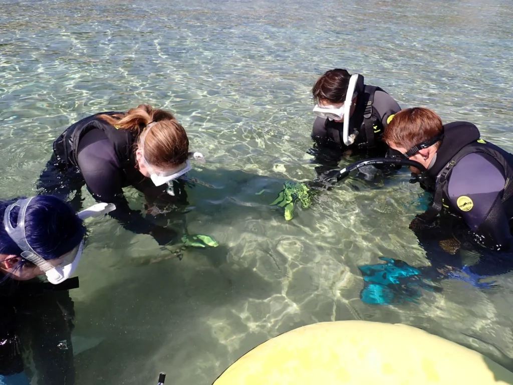 シートラベラーは、いきなり船で沖まで行くことはありません。 まずはビーチの浅瀬、しっかり足が着く場所で、水に慣れるところから始めましょう。 顔を水につけるのが怖かった方も、10分後には夢中で魚を追いかけています。